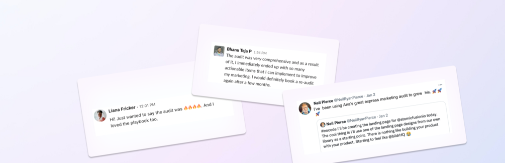 "The audit was very comprehensive and as a result of it, I immediately ended up with so many actionable items that I can implement to improve my marketing. I would definitely book a re-audit again after a few months"
